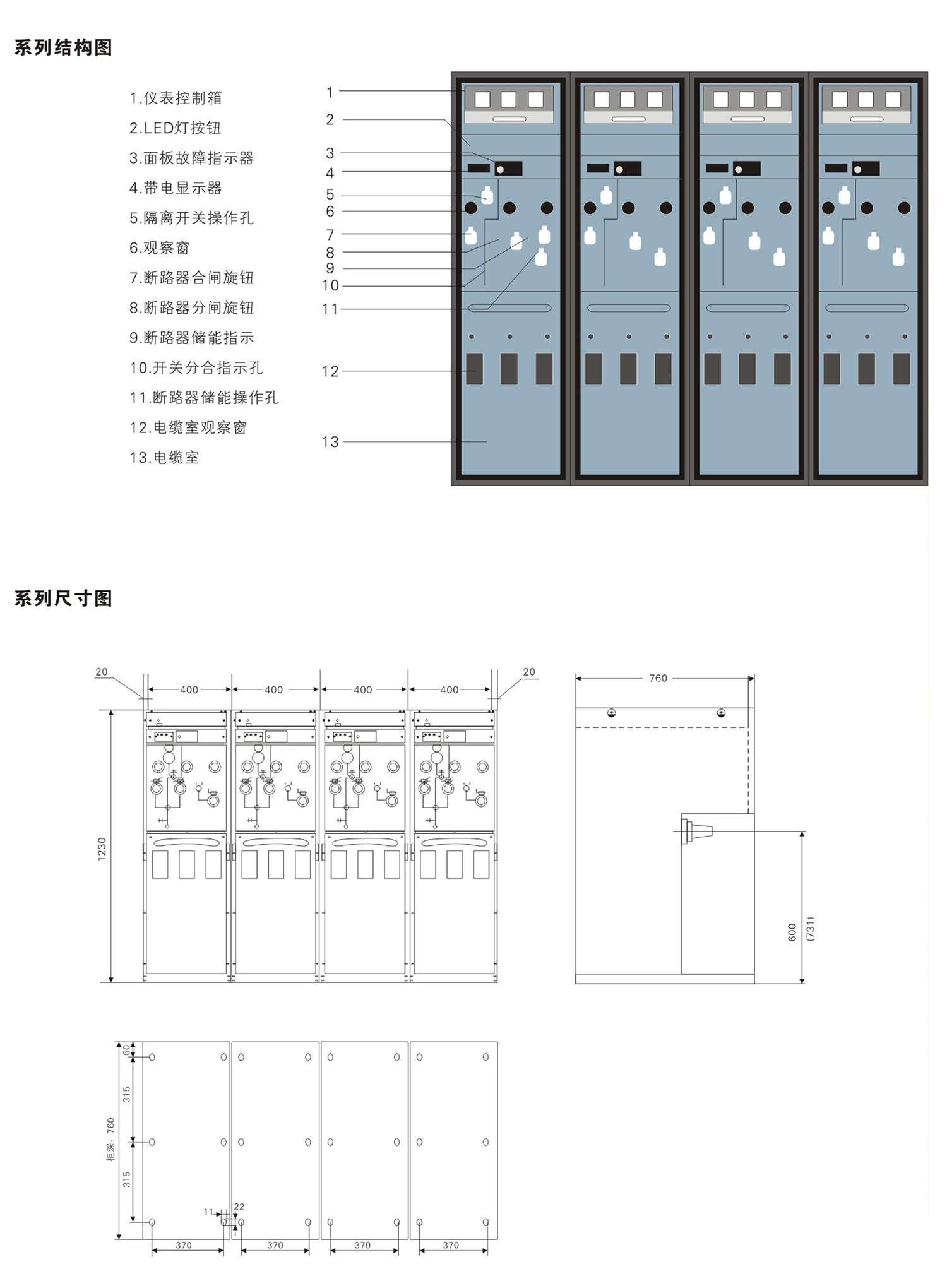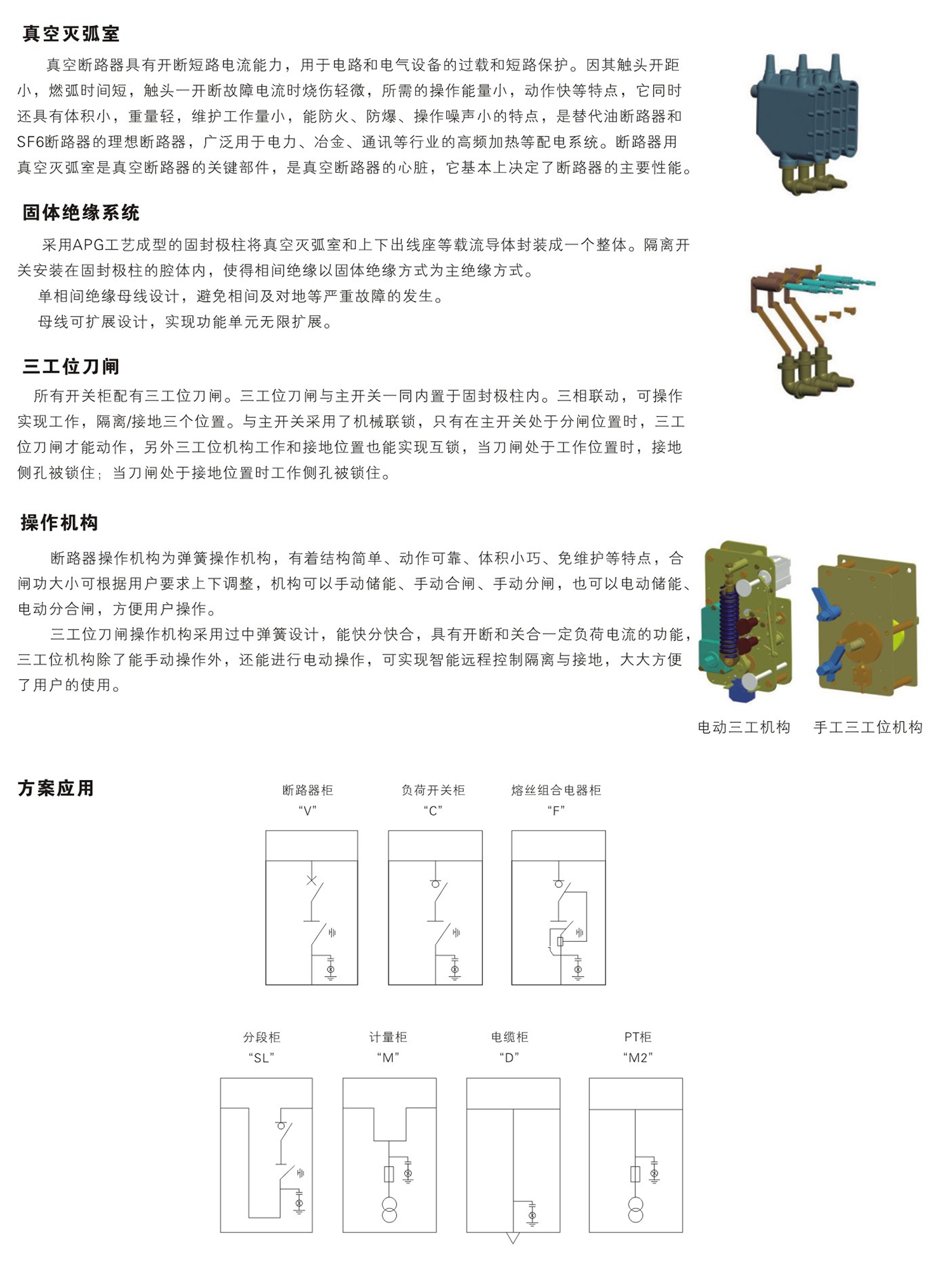 TXGN-12固体绝缘环网开关设备是本公司自行研发的新一代环保型复台绝缘环网柜。主要由三种部件组成,即V单元(断路器单元),C单元(负荷开关单元),F单元(组台电器单元)每个单元可以单独使用也可以自由扩展,其结构分为智能控制仪表室、操作机构和一次部分仪表室可配微机保护(控制器).机构为专用弹操机构,一次部分采用APG自动凝胶工艺,将隔离开关和灭弧室完垒固封在环氧树膳中,并有专用接头和母线相连。灭弧室的设计开关选用的灭弧室采用专用的铜铬触头材料.R型纵磁场触头.以及完全一次封排工艺.该灭弧室开断短···
