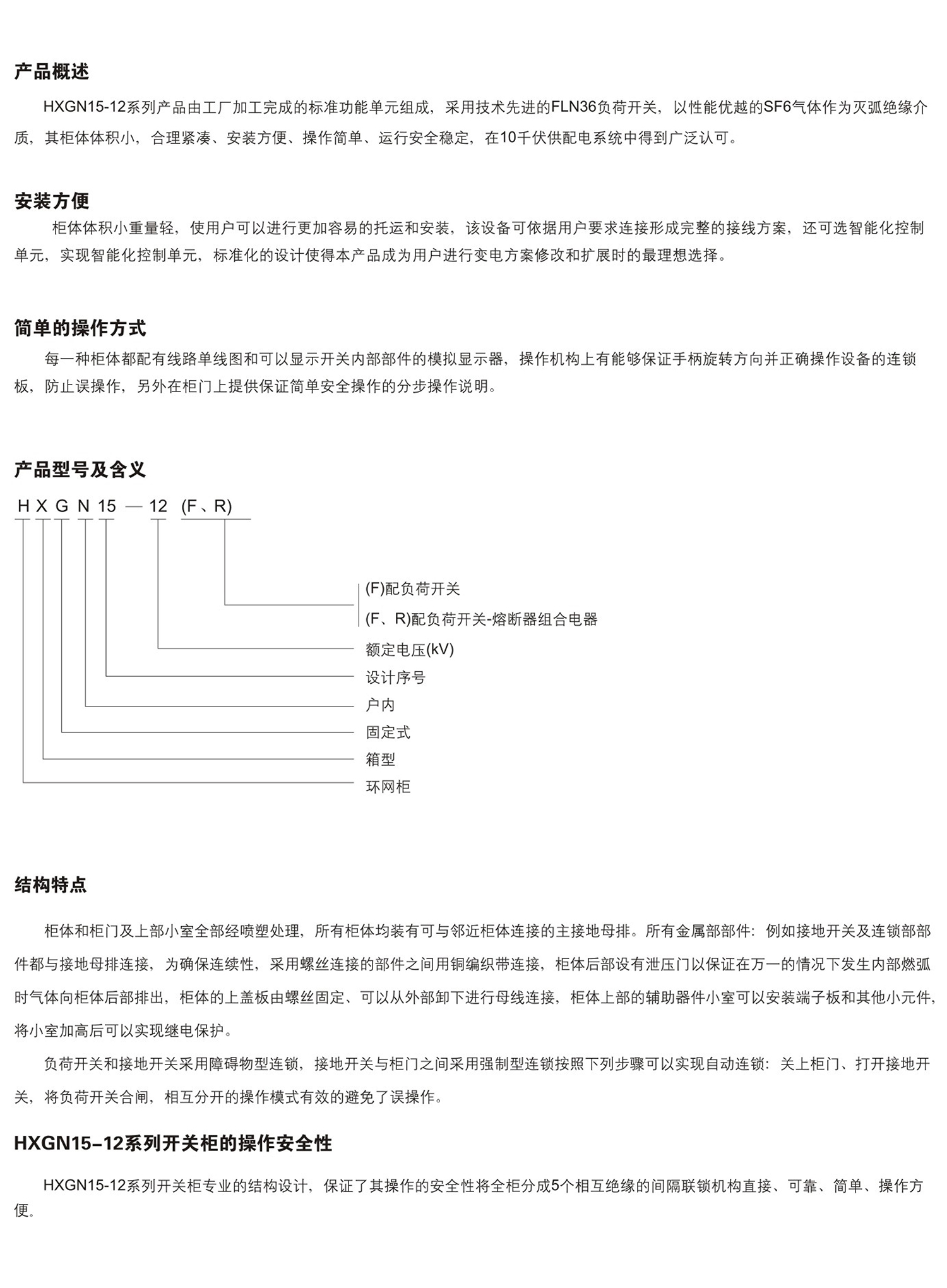 HXGN15-12系列产品由工厂加工完成的标准功能单元组成,采用技术先进的FLN36负荷开关,以性能优越的SF6气体作为灭弧绝缘介质,其柜体体积小,合理紧凑、安装方便、操作简单、运行安全稳定,在10千伏供配电系统中得到广泛认可。