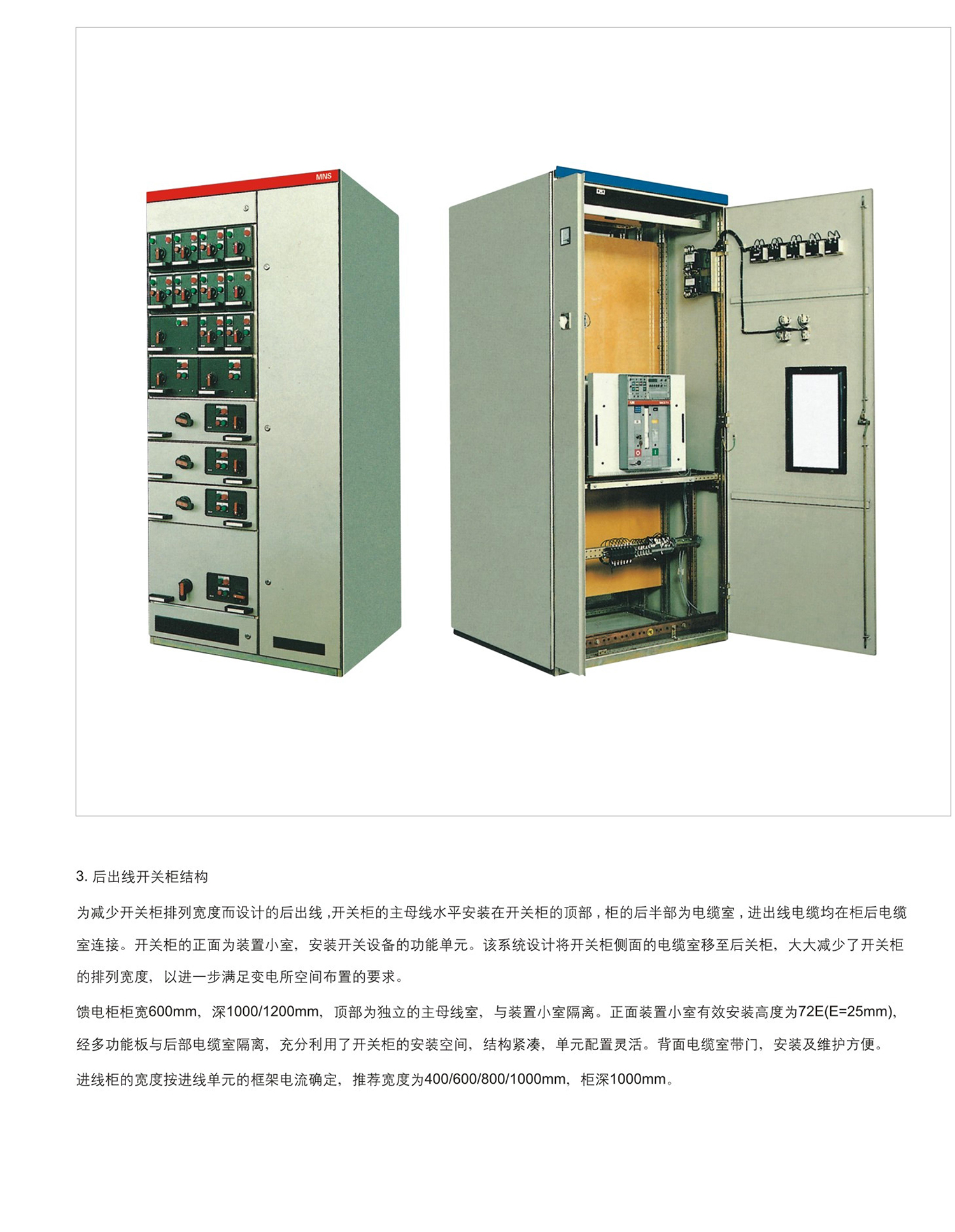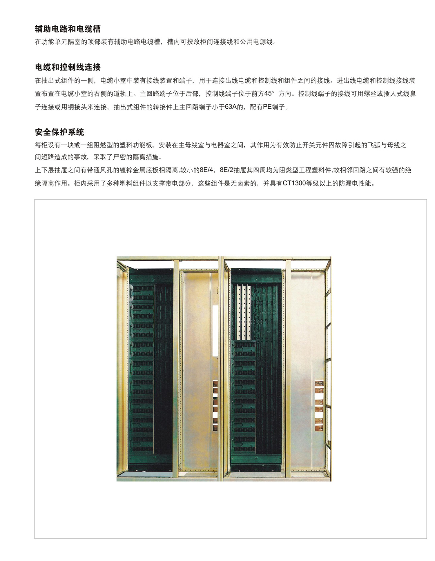 本系列低压抽出式开关柜是一种用标准模件由工厂组装(FBA)的组合式柜型,其技术已达到九十年代末国际水平。本系列低压抽出式开关柜适用于发电厂、变电站、石油化工、冶金轧钢、交通能源、轻工纺织等厂矿企业和住宅小区、高层建筑等场所、作为交流50~60Hz,额定工作电压交流660V及以下的电力系统的配电设备的电能转换、分配及控制之用。本装置符合GB7251.1《低压成套开关设备》及JB/T9961《低压抽出式成套开关设备》国家专业标准、并符合EC439-1、VDE0660第五部分等国际专业标准。